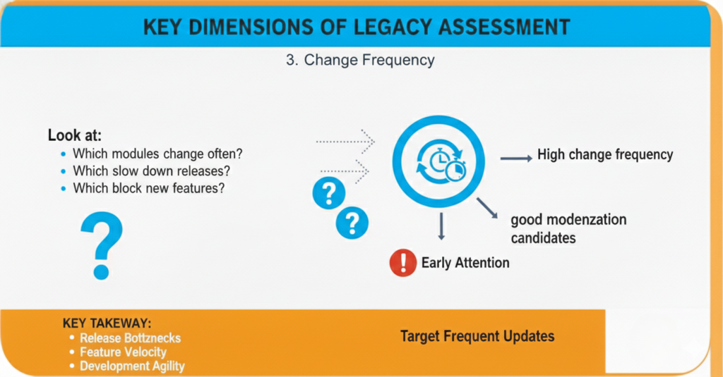 👉 High change frequency = good modernization candidates.