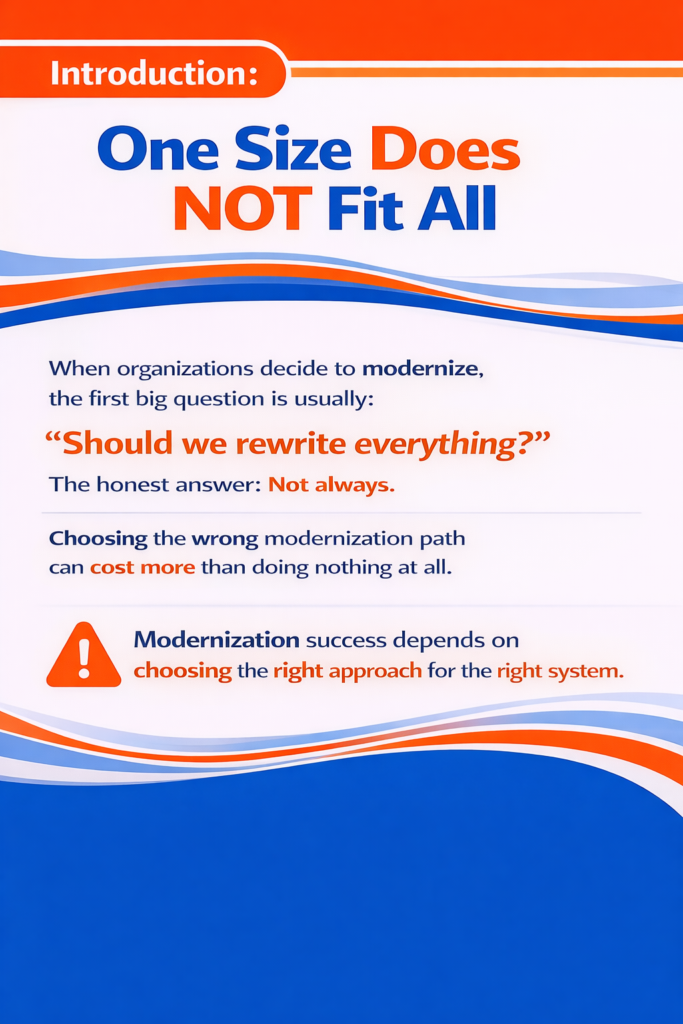 Many organizations discover too late that rewriting is the riskiest option, not the safest.