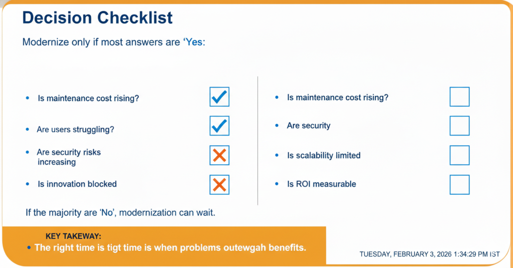 Modernize only if most answers are “Yes”:
